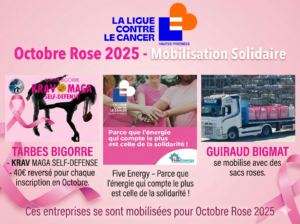 Dans le cadre d’Octobre Rose 2025, la Ligue contre le cancer des Hautes-Pyrénées souhaite adresser ses remerciements les plus sincères aux entreprises qui se sont mobilisées pour la première fois cette année aux côtés du Comité 65 en signant un partenariat. En associant leur image, leurs actions et leur communication à ce mois de sensibilisation, elles ont contribué à faire avancer la prévention et le dépistage du cancer du sein dans notre département. La Ligue tient à remercier chaleureusement :
